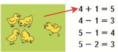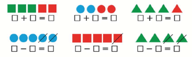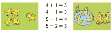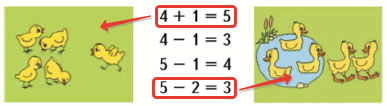 Было 5 красных квадратов. Убрали 1 квадрат. Сколько квадратов стало? Как это записать?