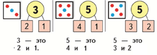 На рисунках показан состав чисел 3 и 5.