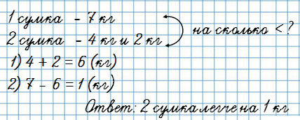 В какой сумке груз легче и на сколько килограммов?