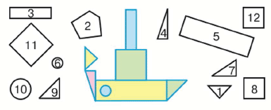 6. Выпиши номера тех фигур, из которых можно сложить такой пароход.