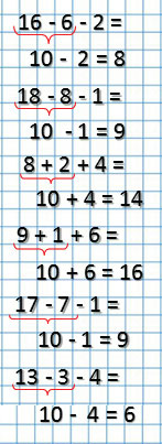 Выполняй вычисления и объясняй, сколько всего вычли из числа или сколько всего прибавили к числу.