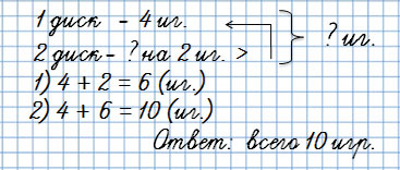 4. Володе подарили два диска с играми, одном диске 4 игры, а на другом — 2 игры больше.