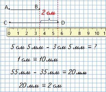 Ответ: Отрезок СD длиннее отрезка АВ на 20 мм.