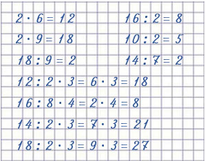 | 12 : 2 • 3 = 6 • 3 = 18 | 14 : 2 • 3 = 7 • 3 = 21 |