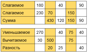 | Вычитаемое | 30 | 500 | 15 | 75 | 0 |