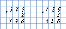 Повтори алгоритм письменного умножения двузначного и трёхзначного чисел на однозначное число.