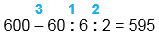1) 60 : 6 = 10 2) 10 : 2 = 5 3) 600 - 5 = 595 | ||||||||||||||||||||||||||||||||||||||||||||||||||||||||||||||||||||