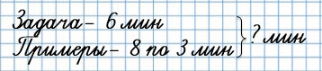 15. 1) Ученик затратил на решение задачи 6 мин, а на решение каждого из 8 примеров по 3 мин. Сколько всего времени затратил ученик на выполнение этого домашнего задания?
