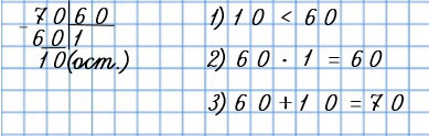 Вычту: 70 - 60 = 10. Сравню остаток с делителем: число оставшихся единиц меньше, чем 60.