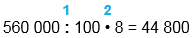 560 000 : 100 • 8 = 44 800