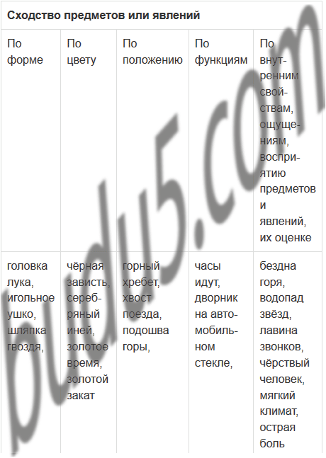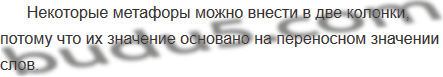 • Подумайте, почему некоторые метафоры можно вписать в две колонки.
