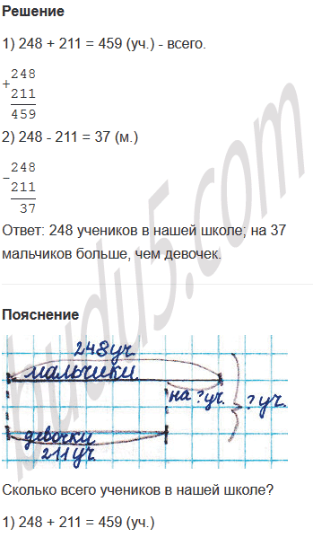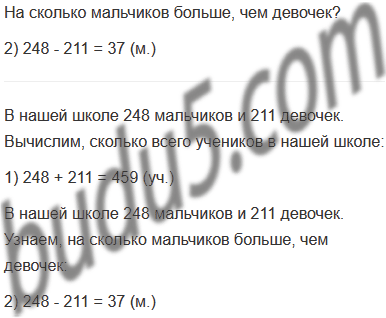 Задание № 5. В нашей школе 248 мальчиков и 211 девочек. Сколько всего учеников в нашей школе? На сколько мальчиков больше, чем девочек?