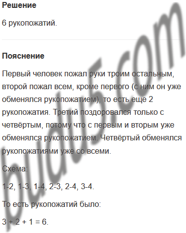 Задание № 9. Четыре человека обменялись рукопожатиями. Сколько было всего рукопожатий?