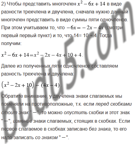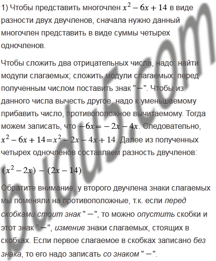 Представьте многочлен в виде разности: