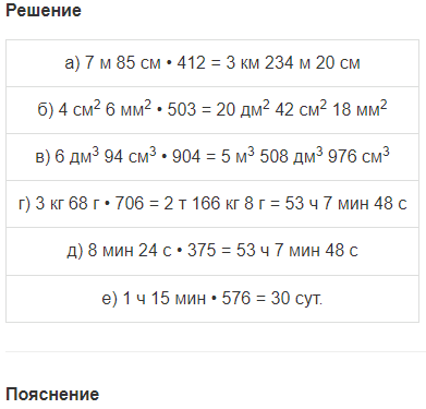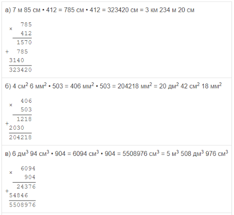 | а) 7 м 85 см • 412 | в) 6 дм3 94 см3 • 904 |
