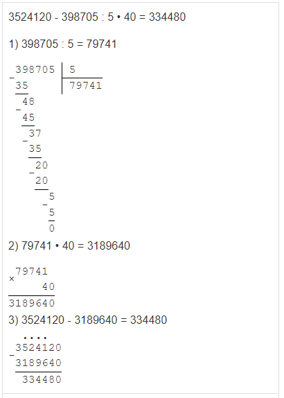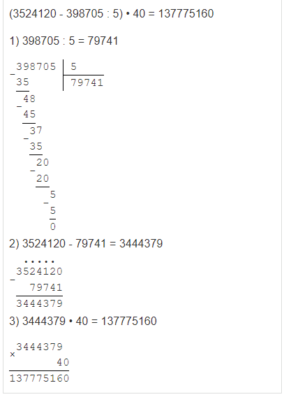 | (3524120 - 398705) : 5 • 40 |