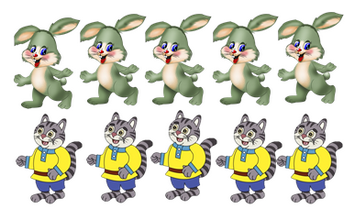 Зайчиков столько же, сколько котиков.