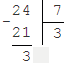 3. Определяю первую цифру частного. 24 : 7 = 3 (ост.3)